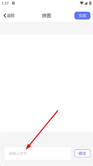 4、拼圖頁面選擇文字功能后,出現輸入框,框內輸入對應文字內容,輸入完成后點擊確定按鈕,完成文字添加操作。