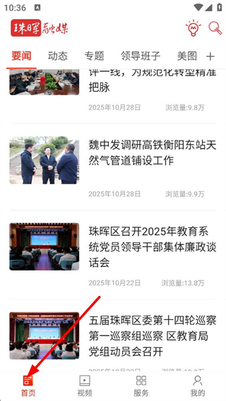1、進入珠暉融媒APP首頁,可看到要聞、動態等多個欄目,還有各類本地新聞資訊,能瀏覽珠暉區的新聞內容。