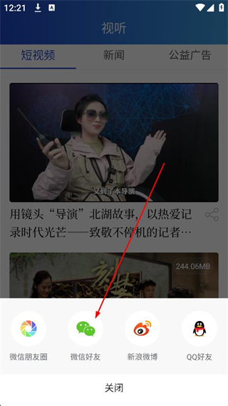 4、點擊視頻對應的分享按鈕,在彈出的選項中選擇微信好友渠道,將該視頻分享給好友。