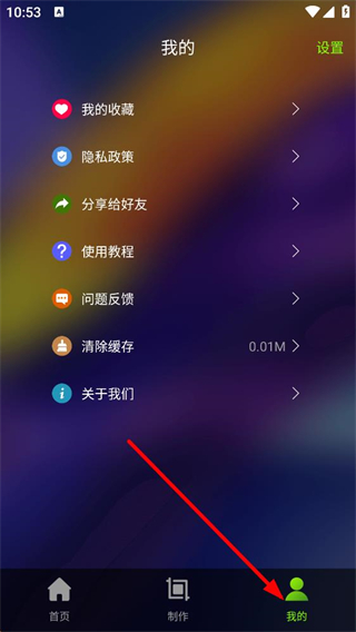 3、點擊底部我的按鈕進入個人頁面,可看到我的收藏、隱私政策等功能選項,收藏管理、設置咨詢等服務,助力使用應用功能。