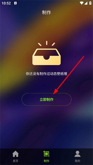2、制作頁面顯示還未制作過動態壁紙的提示,點擊立即制作按鈕,即可進入動態壁紙的制作流程,開始創建專屬動態壁紙內容。