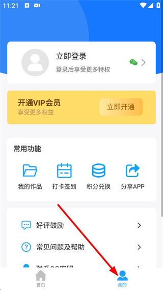 1、打開格式作坊APP,進入我的板塊,可看到立即登錄入口,還有開通VIP會員、常用功能等板塊,能管理個人相關信息和使用功能。
