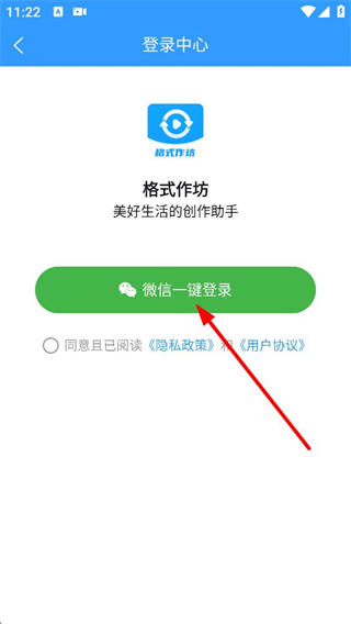 2、登錄中心,可選擇微信一鍵登錄,登錄前需勾選同意隱私政策和用戶協議,方便快捷完成登錄。