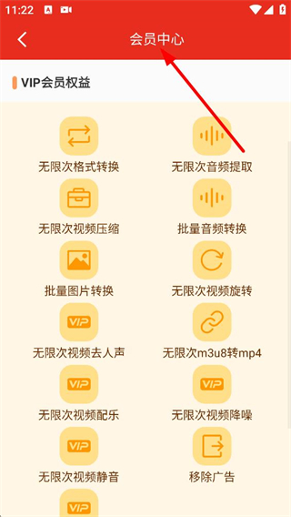 3、進入會員中心,可看到VIP會員權益,如無限次格式轉換、音頻提取等多種功能,開通會員可享受更多服務。