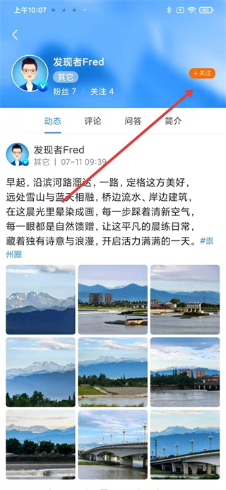 4、點擊動態發布者的頭像進入其個人主頁,查看該用戶的粉絲關注數量,瀏覽其發布的其他動態內容,選擇關注該用戶獲取更多內容。