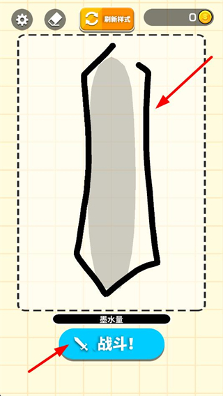 1、先看到繪制好的武器圖案,界面有刷新樣式按鈕,下方顯示墨水量,點擊戰斗按鈕即可進入對戰環節開啟游戲進程。