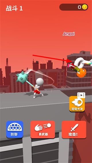 3、操控角色使用武器攻擊對手Angel,成功攻擊后對手會被擊退,持續進行攻擊操作,推進戰斗進程直至擊敗對手。