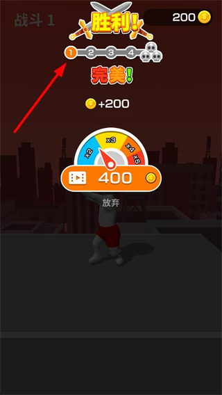 4、出現勝利界面,顯示完美評價,獲得200金幣,可選擇觀看視頻獲取400金幣,也可點擊放棄領取當前獎勵。