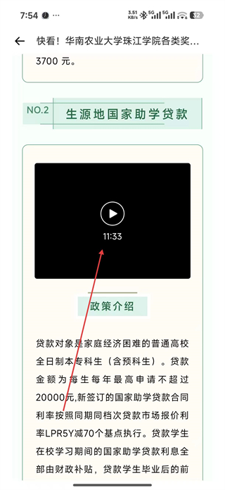 4、觀看視頻知曉貸款利率的執行標準,以及在校期間利息的補貼規則,獲取完整的政策信息。