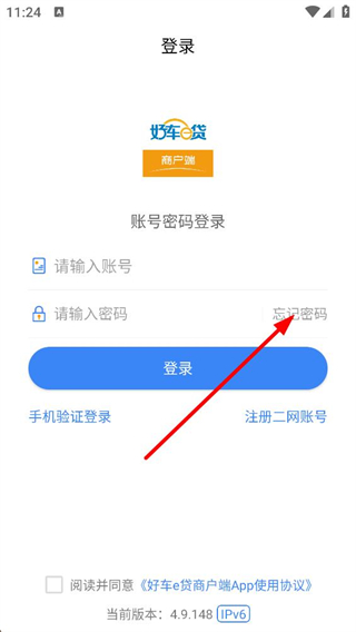 1、進入游戲先看到好車e貸商戶端的登錄界面,可走賬號密碼登錄流程,也能點擊忘記密碼重置密碼,還能選手機驗證登錄或注冊賬號。