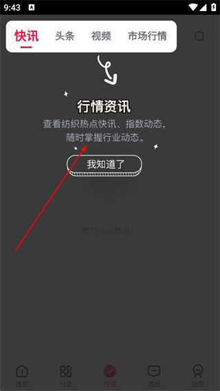 3、進入行情頁面點擊行情資訊提示的我知道了,可查看紡織熱點快訊、指數動態,隨時掌握行業動態。