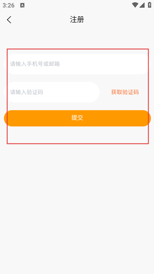 4、在注冊界面輸入手機號或郵箱,獲取并輸入驗證碼,點擊提交按鈕,完成注冊流程。