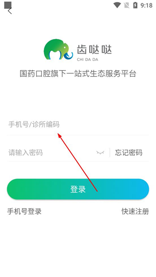 2、在登錄界面選擇手機號診所編碼登錄方式,輸入對應信息和密碼,點擊登錄按鈕完成賬號驗證。