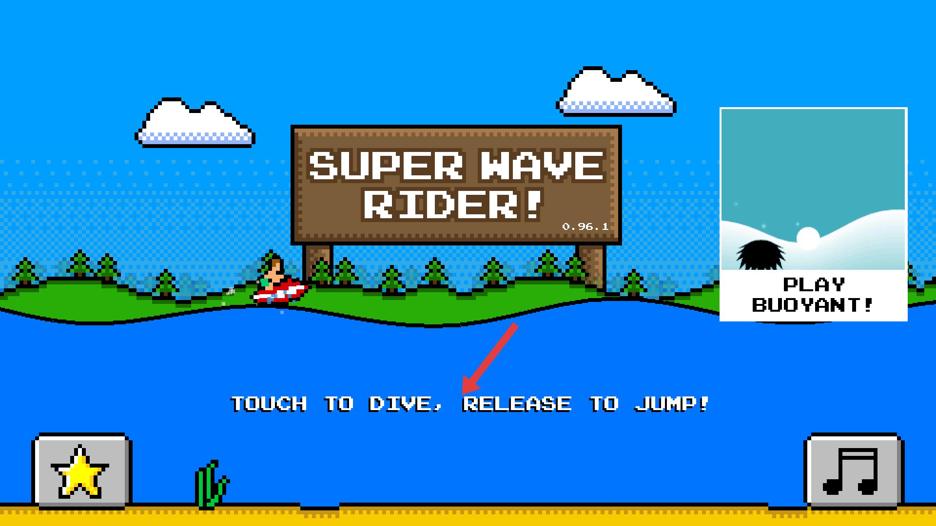 1、游戲初始界面,顯示游戲主頁面,提示在箭頭指示位置,了解操作規則后,點擊屏幕,即可操控角色駕駛水上摩托開始游戲。