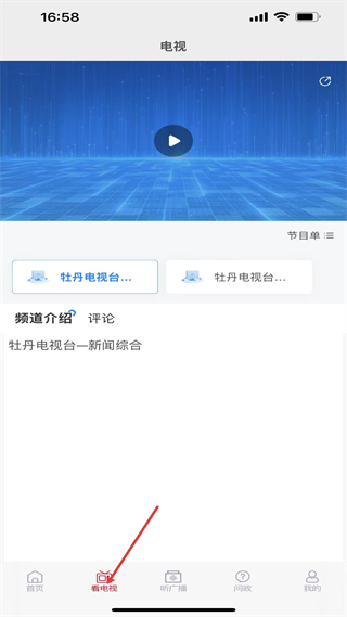2、看電視板塊,可觀看牡丹電視臺新聞綜合頻道,有節目單和頻道介紹,用戶可在線收看本地電視節目。