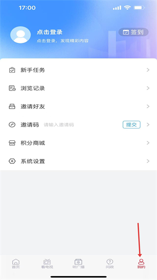 4、我的板塊,提供登錄入口,有新手任務、瀏覽記錄等功能,用戶可管理個人賬號、參與積分商城和系統設置。