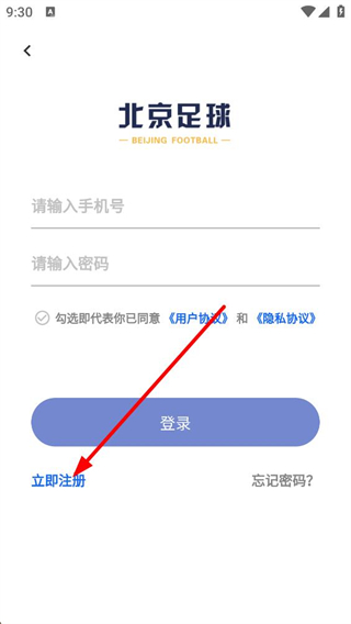 3、登錄界面需輸入手機號和密碼,勾選用戶協議與隱私協議后點擊登錄,若未注冊可選擇立即注冊,進入注冊流程完成賬號創建。