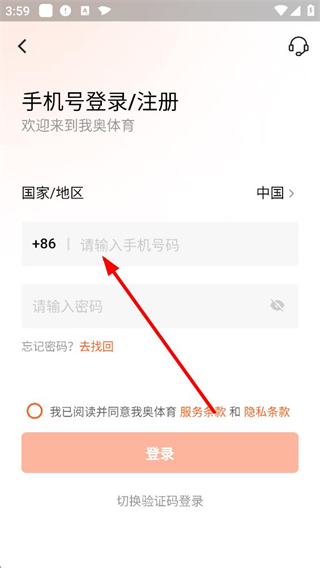 4、切換到密碼登錄模式,找到請輸入手機號碼的輸入框,填寫對應號碼后準備輸入密碼完成登錄。