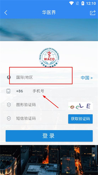1、進入登錄頁面,選擇國際地區并確認,輸入手機號,完成圖形驗證碼驗證,再獲取并填寫短信驗證碼,可點擊登錄按鈕進入主界面。