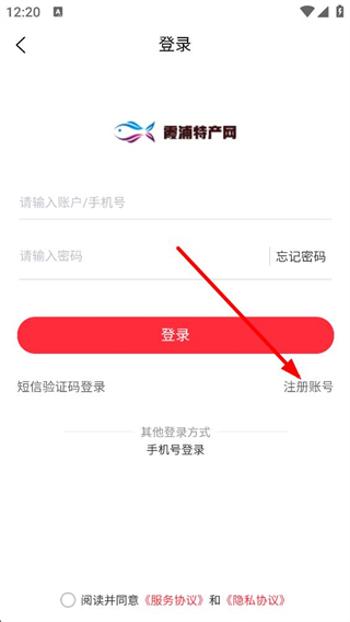 3、進入登錄界面,看到賬戶、手機號、密碼輸入項,還有短信驗證碼登錄等方式,點擊注冊賬號選項,進入注冊賬號的界面。