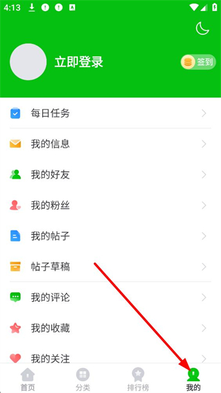 1、進入223樂園APP我的界面,可點擊立即登錄,登錄后可查看每日任務、我的信息、我的好友等功能,還能進行簽到操作。