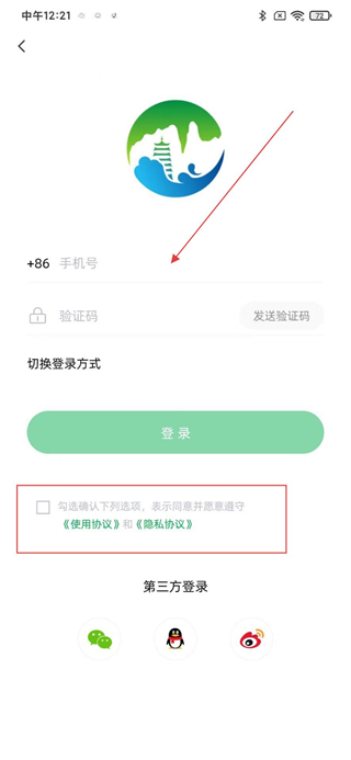 1、進入桂平融媒登錄頁,輸入手機號,點擊發送驗證碼并填入,勾選協議選項,可選擇第三方登錄方式,完成賬號登錄。