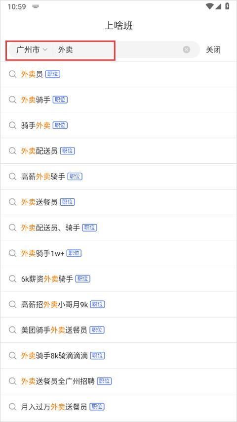 1、用戶打開并登錄上啥班app,進入頁面后可以通過頂部搜索框根據用戶手機定位城市進行相關職位的精準搜索。