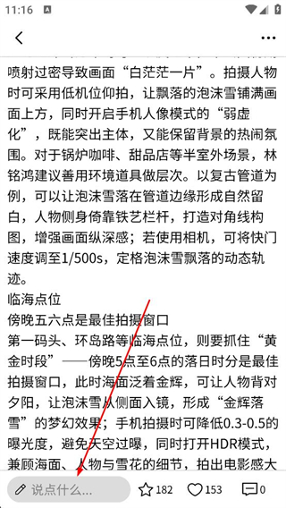 4、繼續瀏覽資訊后續內容,查看其中的拍攝技巧等實用信息,可在頁面下方的輸入框留言參與互動。