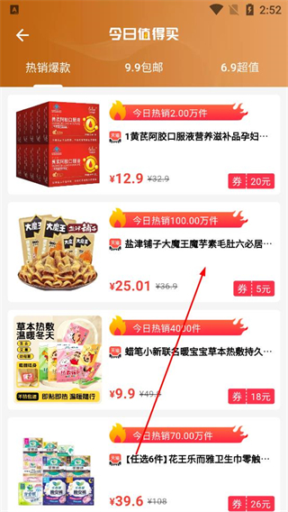 3、查看完整的商品列表,選擇感興趣的商品,查看其價格銷量及優惠券信息,了解商品基本情況。
