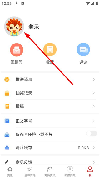 2、點擊我進入個人頁面,顯示登錄入口,有邀請碼、收藏、評論等功能選項,還有推送消息、抽獎記錄等個人服務,可進行賬號登錄操作以使用更多功能。