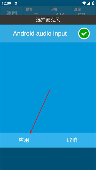 3、查看完說明后返回節拍器頁面,點擊麥克風選項,進入選擇麥克風的頁面,準備設置錄音設備。