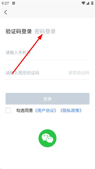 3、登錄界面提供驗證碼登錄和密碼登錄兩種方式,選擇驗證碼登錄需輸入手機號獲取并填寫驗證碼,勾選用戶協議和隱私政策后可點擊登錄。
