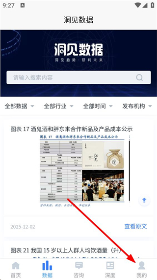 1、進入數據頁面可看到各類數據圖表,能通過搜索框輸入內容查找信息,也可利用篩選條件縮小范圍,點擊查看原文可獲取對應數據的詳細內容。