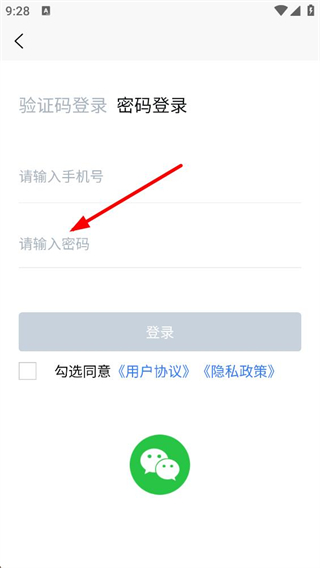 4、選擇密碼登錄則需輸入手機號和對應的密碼,同樣要勾選相關協議政策,完成信息填寫后點擊登錄按鈕,即可進入賬號使用對應的功能服務。