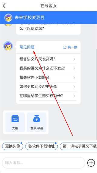 3、進入在線客服頁面可看到常見問題板塊,選擇感興趣的問題,如預售講義幾天發貨,查看客服解答。