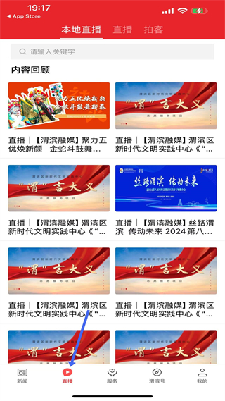 2、直播模塊呈現本地直播內容回顧,涵蓋文化活動、文明實踐等主題,方便用戶回看區域相關的直播內容。
