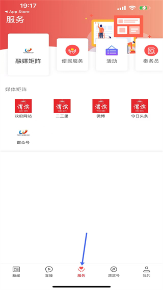 3、服務模塊整合融媒矩陣、便民服務等功能,關聯政物府網站等渠道,是對接區域服務資源的綜合頁面。
