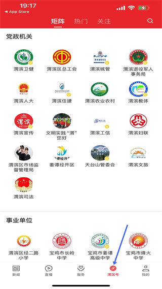 4、渭濱號模塊展示區域內黨政機關、事業單位等機構賬號,支持關注,是獲取細分領域信息的聚合平臺。