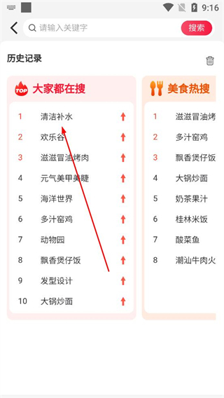 3、點擊搜索框進入搜索頁面,查看歷史記錄及大家都在搜的內容,選擇清潔補水等熱門關鍵詞,點擊后可查看相關商品列表。