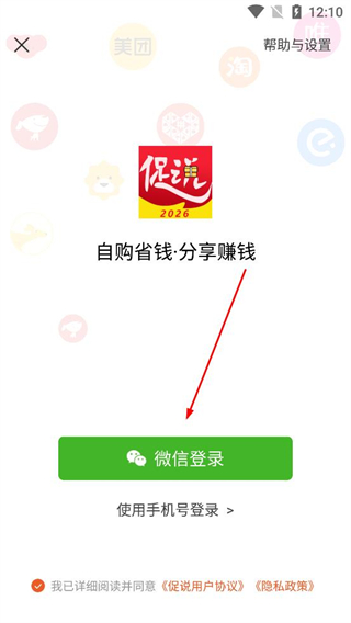 2、在登錄頁面選擇微信登錄或手機號登錄,勾選用戶協議和隱私政策,完成登錄,獲取更多購物權益。