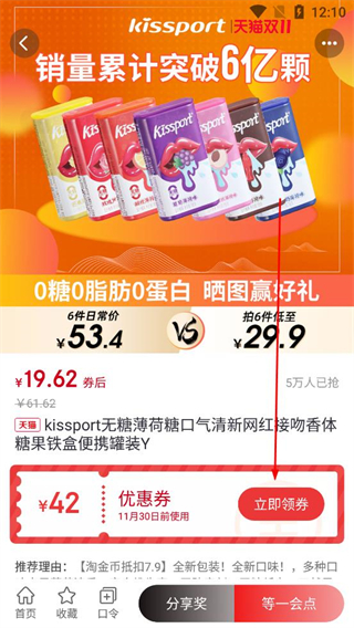 4、點擊感興趣的商品進入詳情頁,查看商品介紹和優惠信息,點擊立即領券,獲取對應優惠券,以便低價購買商品。