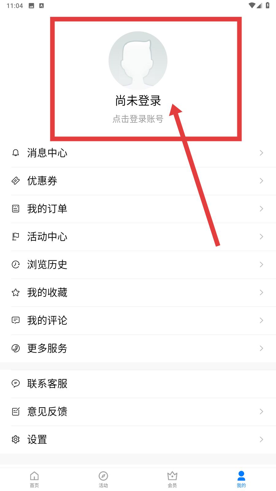 2、在主界面,點擊底部導航欄我的,進入個人中心頁面,等待頁面加載完成,確認顯示尚未登錄點擊登錄賬號等功能入口。