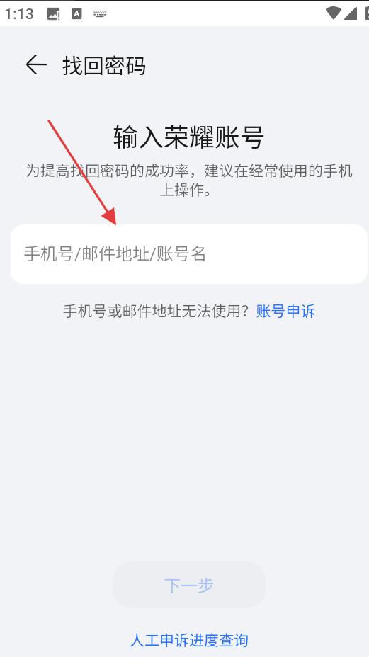3、榮耀賬號找回密碼頁,需輸入榮耀賬號手機號、郵件、賬號名,建議常用手機操作,有賬號申訴等輔助入口。