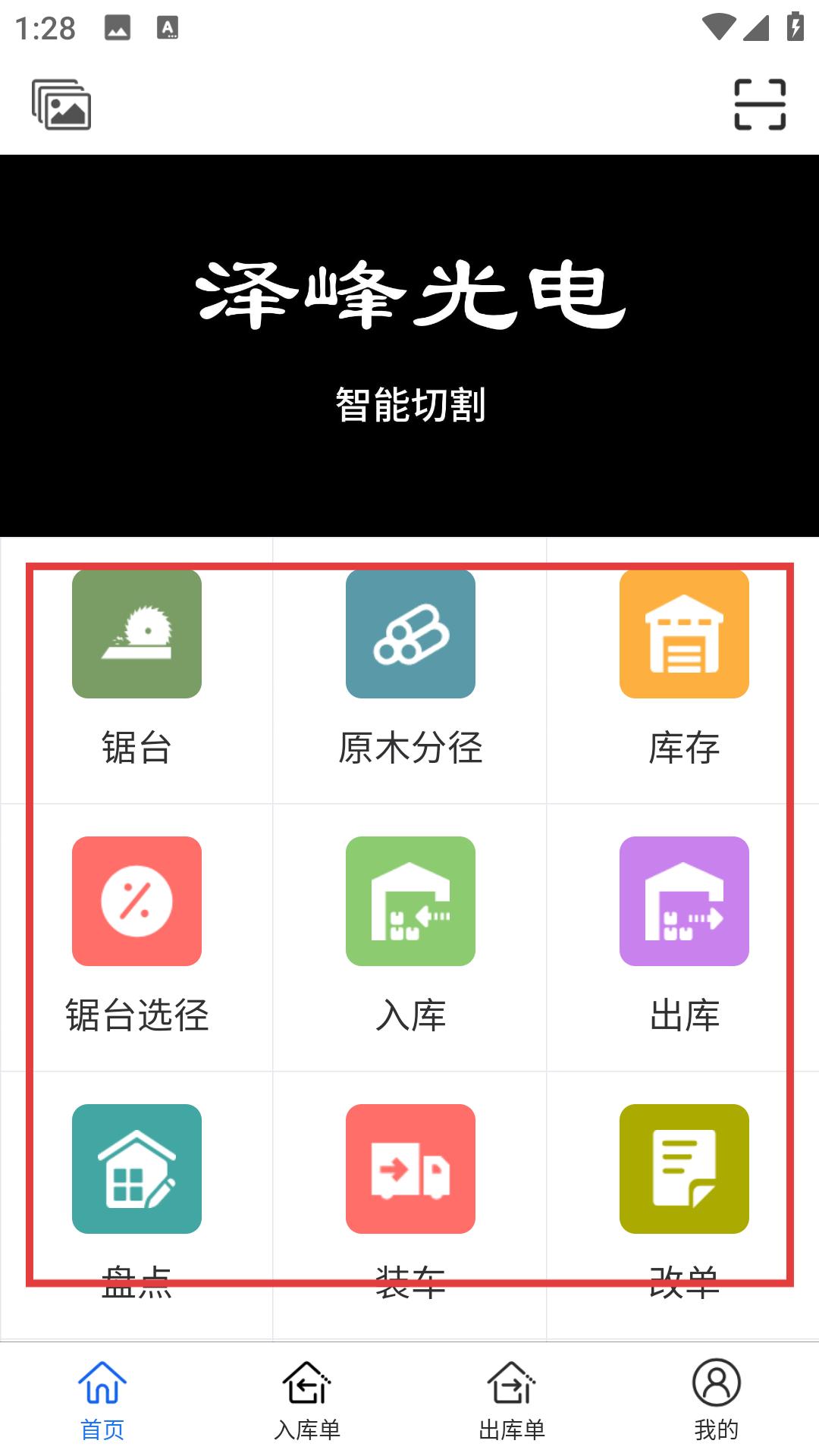 2、在首頁,用鋸臺選徑,做原木分徑,查庫存,辦入庫出庫,用盤點裝車,推進生產管理。