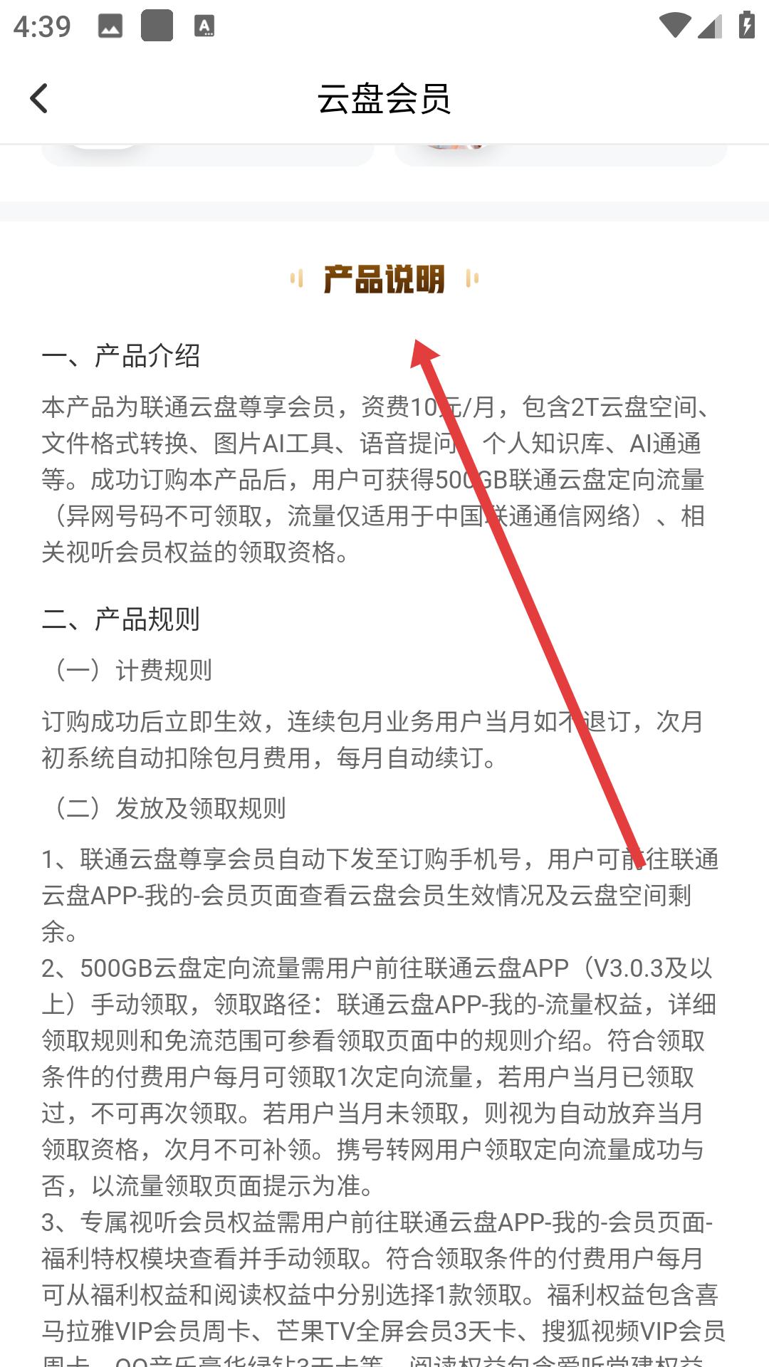 4、訂購前可查看產品說明,了解產品介紹和產品規則,包括計費規則、發放及領取規則等信息。