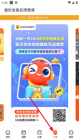 4、進入分享頁面可參與邀好友得贈課活動,通過分享課程海報,邀請他人領取體驗課,自身可獲得贈課獎勵,拓展學習資源。