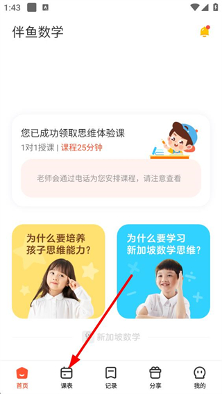 1、進入應用首頁可領取思維體驗課,課程為1對1授課時長25分鐘,領取后老師會電話安排課程,還能了解培養孩子思維能力的相關內容。