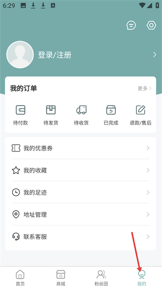 4、我的板塊,可登錄注冊,查看我的訂單、優惠券、收藏等,還有地址管理、聯系客服功能,管理個人追星相關信息。