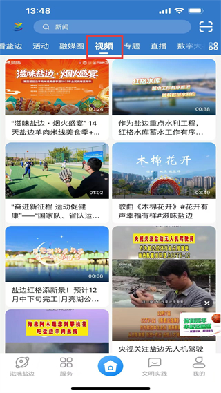 4、切換到視頻板塊,能觀看美食季、水利工程等主題視頻,每個視頻標注時長,選擇感興趣的內容觀看,豐富視聽體驗。