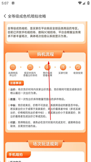 3、在攻略頁面查看購機流程和注意事項,了解競拍規則,為參與競拍做準備。